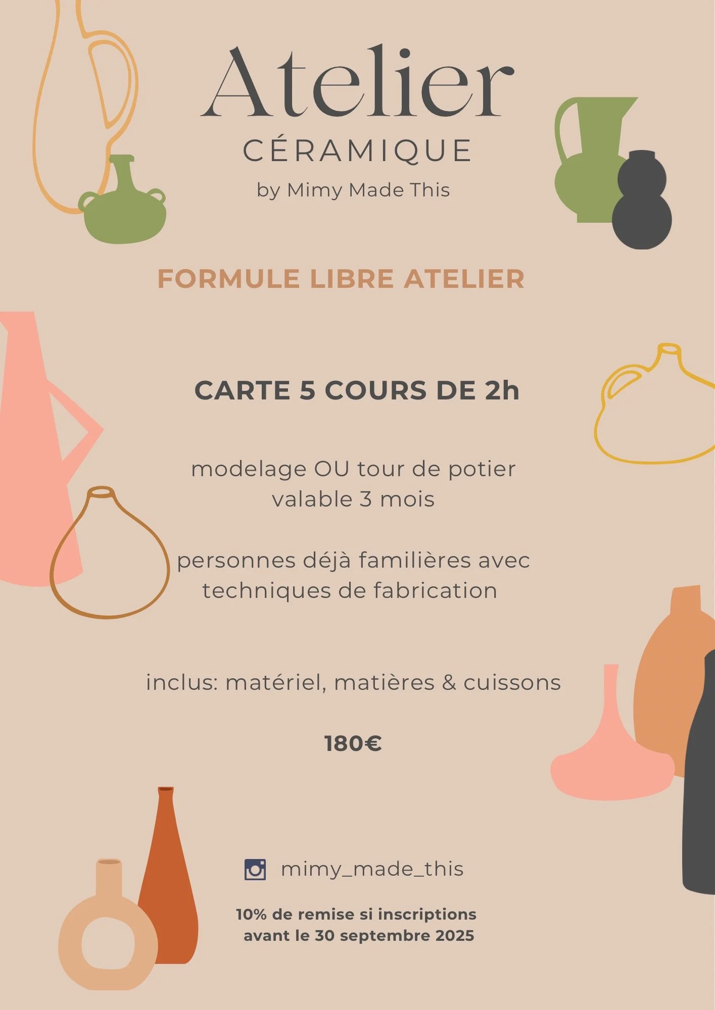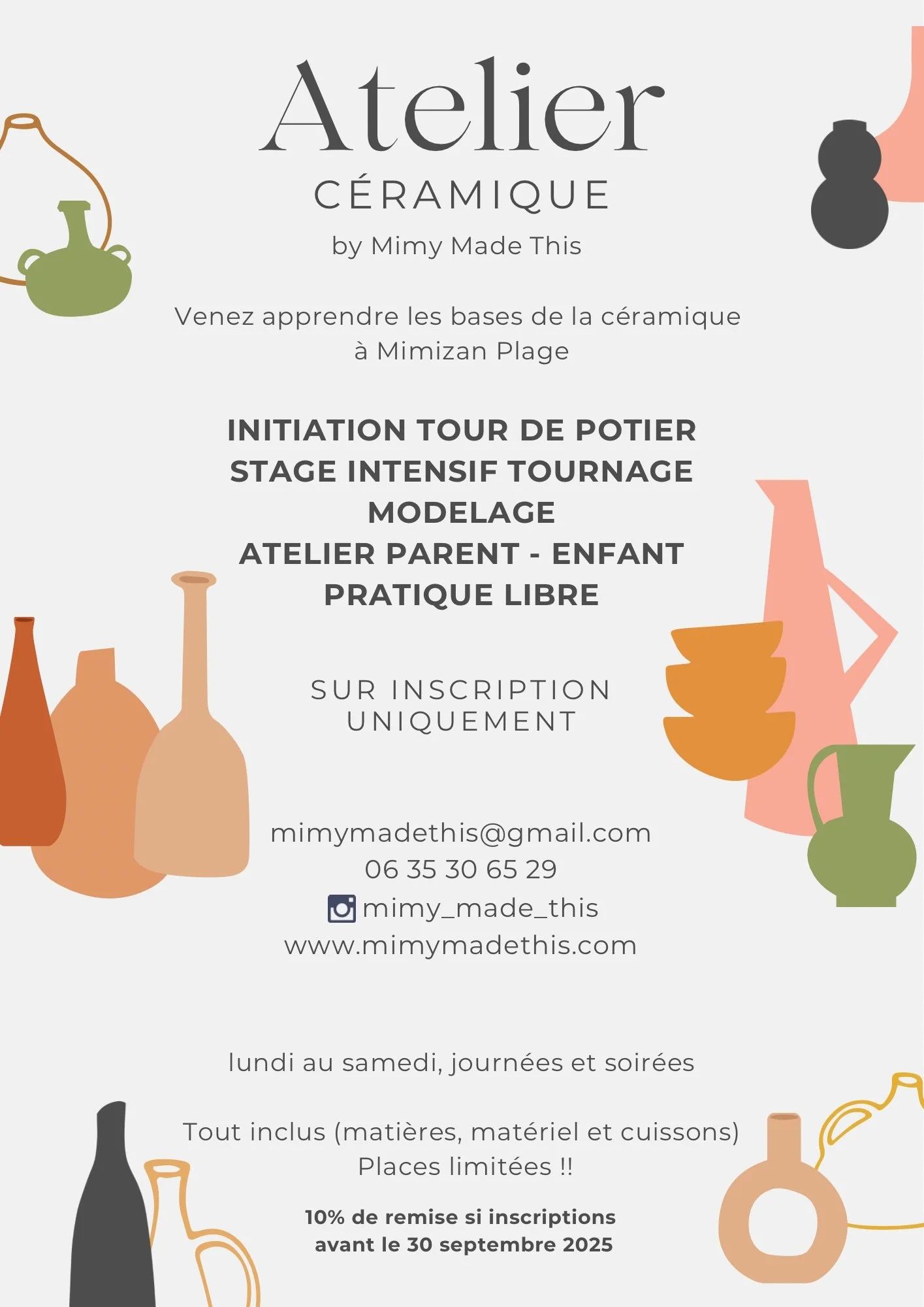 Situé à Mimizan plage, au coeur de ma propre maison, venez découvrir la magie et les bienfaits de la pratique de la céramique au sein d’un lieu convivial et lumineux.